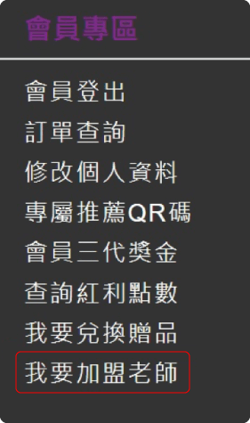 首先老師先完成會員註冊完成後即可以進入加盟系統,提交申請資料,與本公司系統管理部門簽訂合作契約並且與本公司五術總監面談即可以完成加盟。