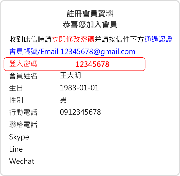 填入勾选项目後送出,等待约10分钟内系统传送密码至Email